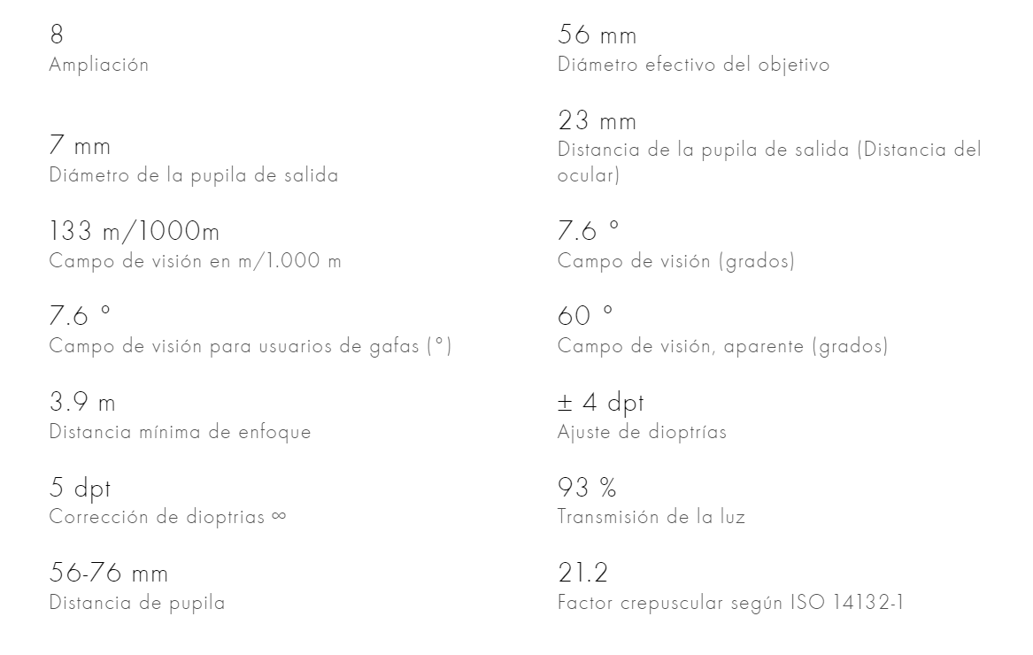 Gracias a la alta luminosidad del modelo SLC 8×56, podrá disfrutar de un binocular que ofrece una transmisión de luz excepcional. Le asombrará su óptica, que se ha optimizado para utilizarlo de noche, y que muestra una sobresaliente nitidez hasta los bordes y un gran campo de visión. Las hendiduras ampliadas para un mejor agarre y el peso equilibrado garantizan la máxima comodidad de uso.